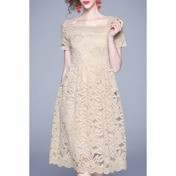 Women Short Sleeve Classic Solid Pattern Square Neck Dress Walmart Com