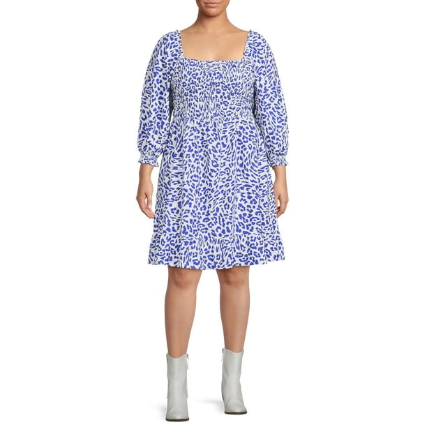 The Get Women S Plus Size Long Sleeve Square Neck Mini Dress Walmart Com
